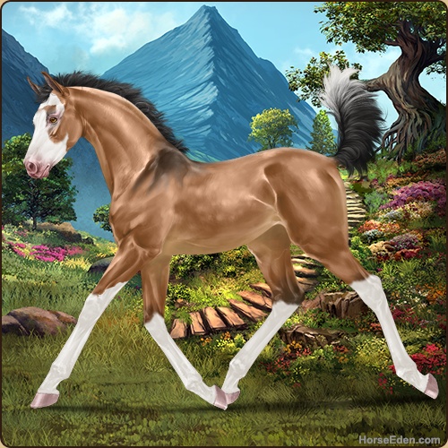Color: Light Bay Dun Splash White Sabino