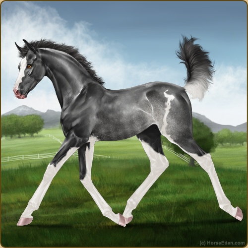 Color: Smokey Black Sabino RabicanoHorse Nbr: 43610913Breed: Anglo ArabianSex: FillyBirthdate: February 10, 2026Age: 1Birth Year: 199Height: 10.3 Hands