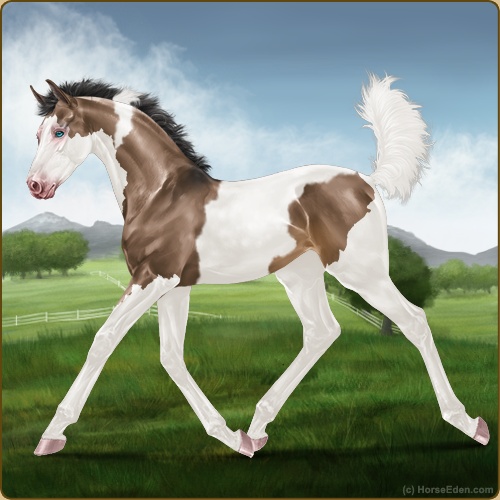 Color: Brown Dun Tobiano Splash White