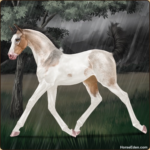 Color: Light Bay Roan Dun Tobiano Splash White Sabino