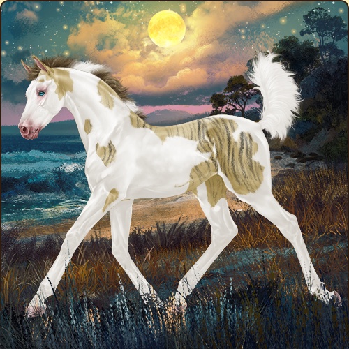 Color: Amber Champagne Tobiano Splash White Sabino Appaloosa Brindle