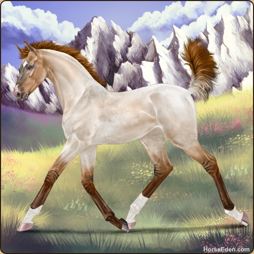 Another fun one. I thought she was like, Golden Buckskin under Grey at first glance, til I saw her legs. A very pleasant breed-up prospect ♡
