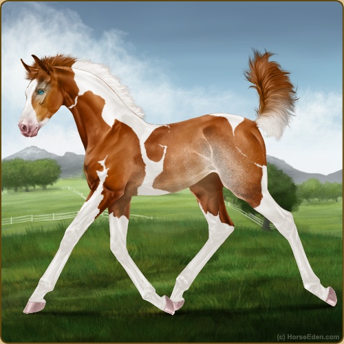 Color: Chestnut Tobiano Splash White Sabino Rabicano