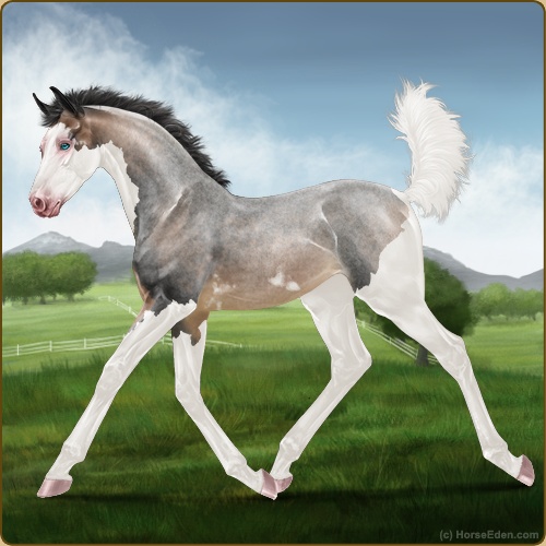 Color: Mahogany Bay Roan Dun Splash White Sabino