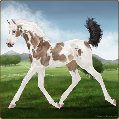 Color: Brown Buckskin Tobiano Splash White