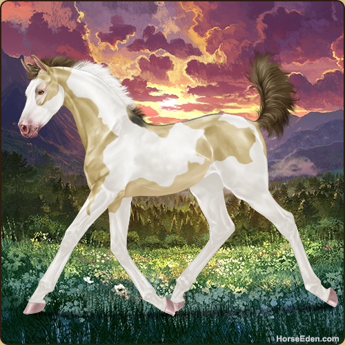 Color: Amber Dun Tobiano Splash White