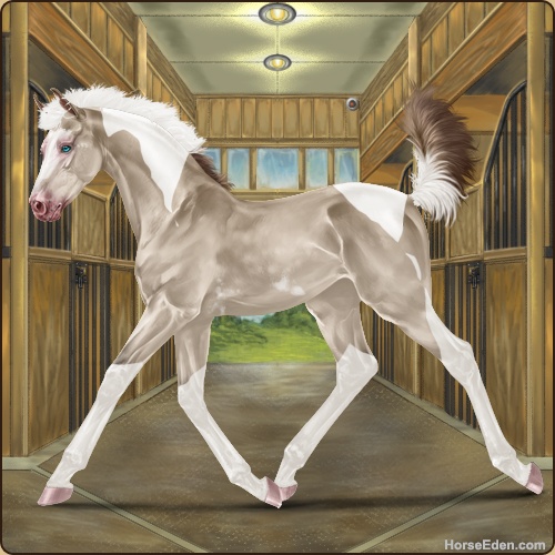 Color: Amber Creme Pearl Tobiano Sabino