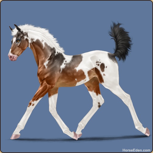Color: Light Bay Tobiano Splash White