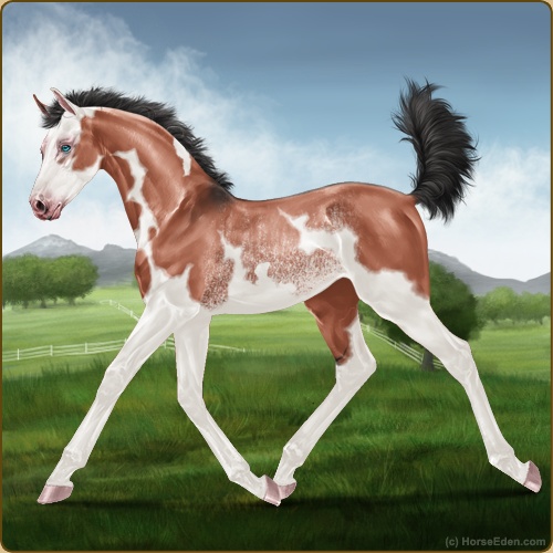 Color: Blood Bay Dun Tobiano Splash White Sabino Rabicano Frame