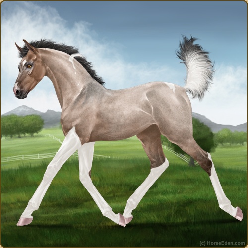 Color: Mahogany Bay Roan Dun Tobiano