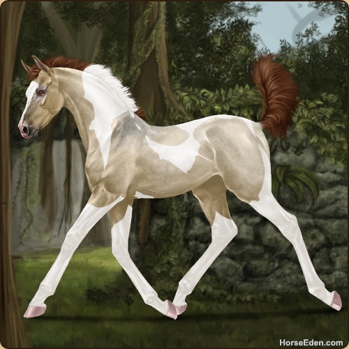 Color: Dark Red Roan Dun Tobiano