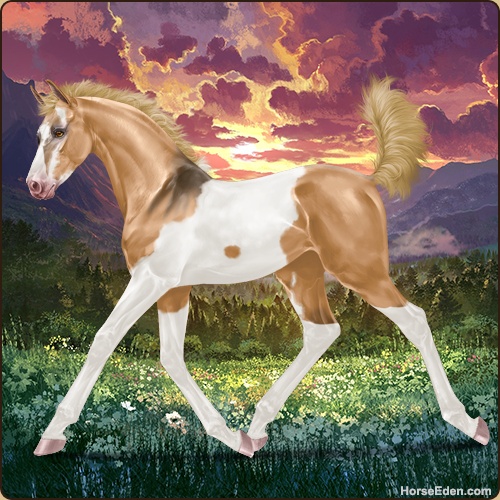 Color: Flaxen Red Dun Tobiano Splash White Sabino