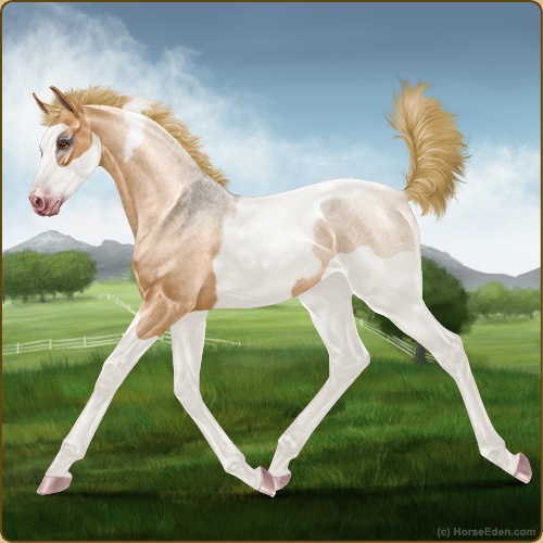Color: Flaxen Red Roan Dun Tobiano Splash White