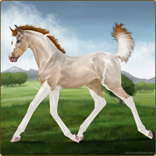 Color: Red Roan Dun Tobiano Sabino