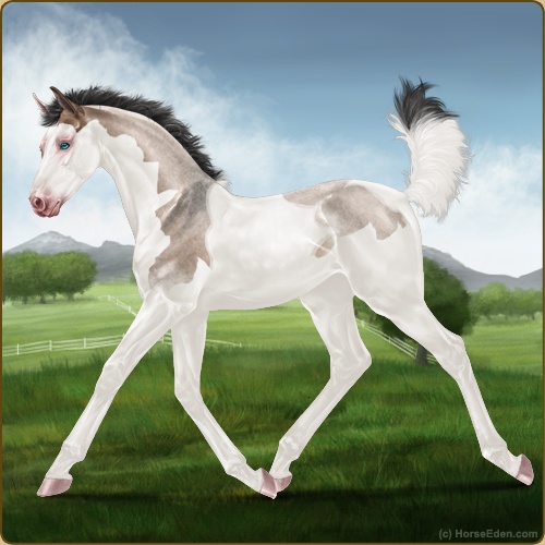 Color: Brown Roan Dun Tobiano Splash White Sabino