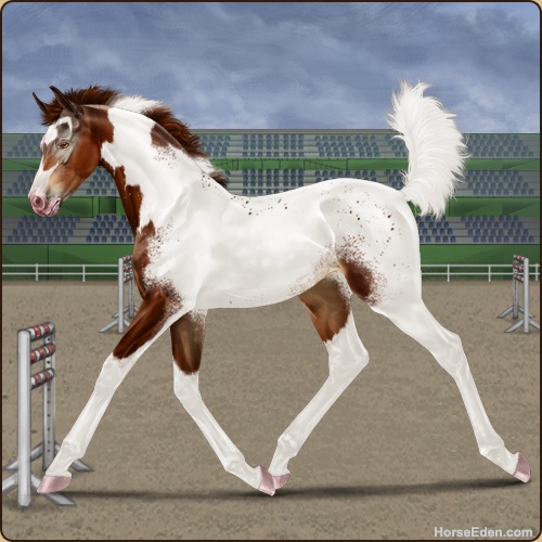 Color: Chestnut Tobiano Rabicano Near Fewspot Appaloosa