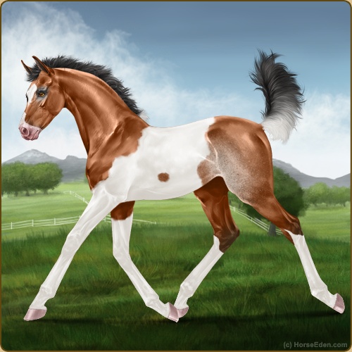 Color: Light Bay Tobiano Splash White Rabicano