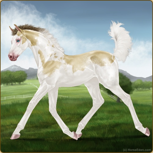 Color: Amber Champagne Tobiano Splash White Sabino Rabicano