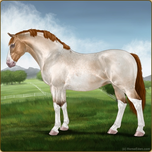 Color: Red Roan Dun Splash White