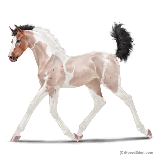 Color: Blood Bay Roan Dun Tobiano Sabino