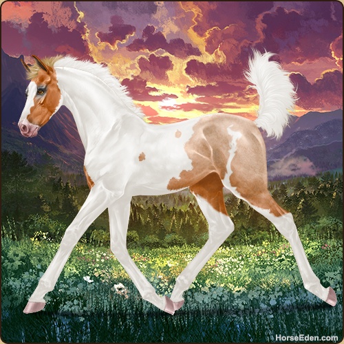 Color: Flaxen Red Roan Tobiano Sabino