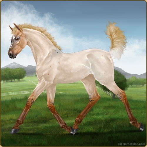Color: Flaxen Red Roan Dun Rabicano