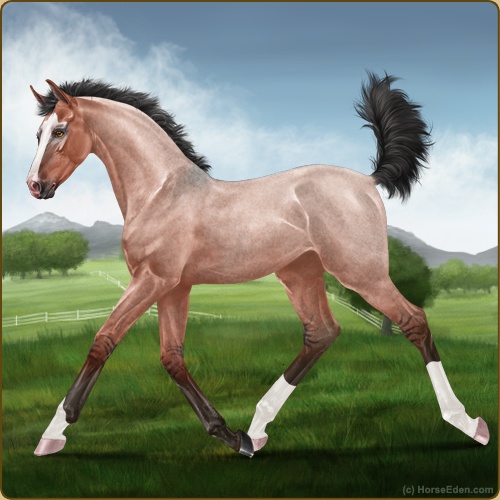 Color: Blood Bay Roan Dun