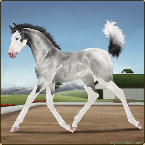 Color: Smokey Blue Roan Splash White Sabino