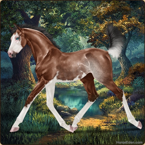 Color: Mahogany Bay Splash White Rabicano