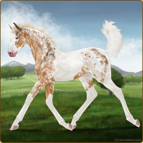 Color: Flaxen Red Dun Tobiano Splash White