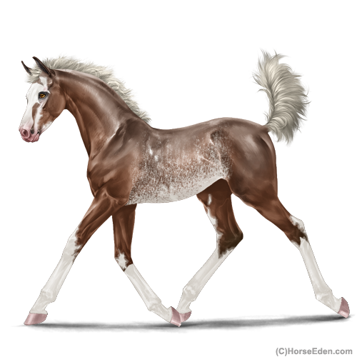 Color: Silver Mahogany Bay Sabino RabicanoHorse Nbr: 43693986Breed: ThoroughbredSex: FillyBirthdate: February 24, 2026Age: 1Birth Year: 199Height: 10 Hands