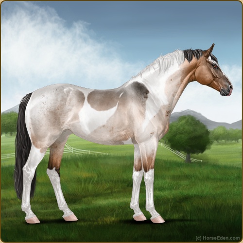 Color: Light Bay Roan Dun Tobiano