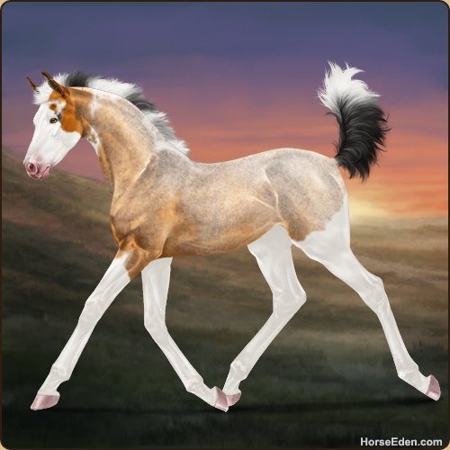 Color: Golden Bay Roan Tobiano Splash White