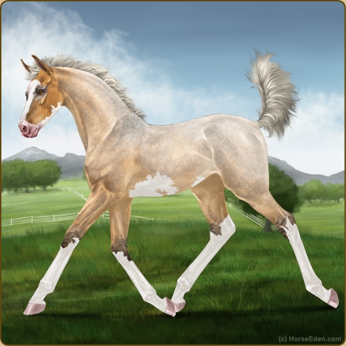 Color: Silver Golden Bay Roan Dun Splash White Sabino