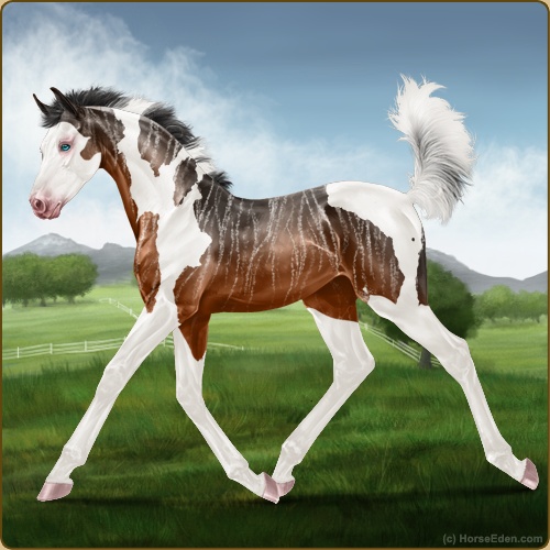Color: Light Bay Tobiano Splash White Sabino Brindle