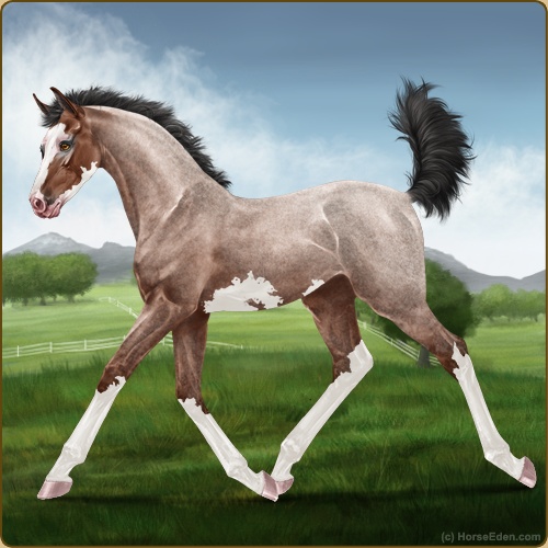 Color: Mahogany Bay Roan Sabino