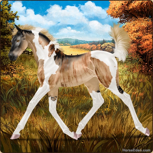 Color: Flaxen Red Dun Tobiano Brindle