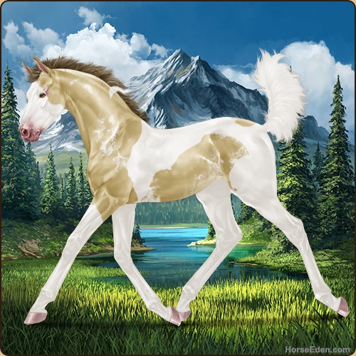 Color: Amber Champagne Tobiano Splash White Sabino Rabicano