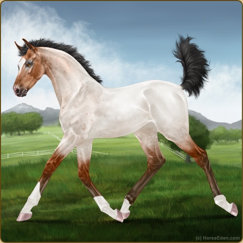 Color: Light Bay Roan Varnish Snowcap Appaloosa