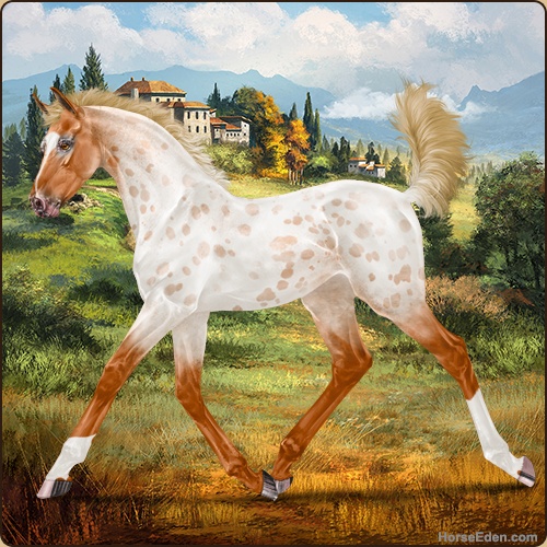 Color: Flaxen Red Roan Varnish Near Leopard Appaloosa