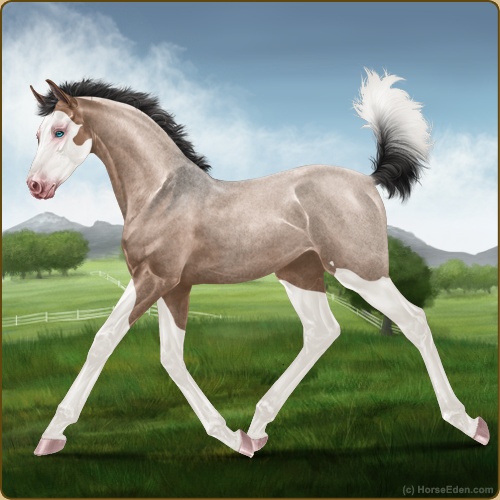Color: Mahogany Bay Roan Dun Splash White Sabino