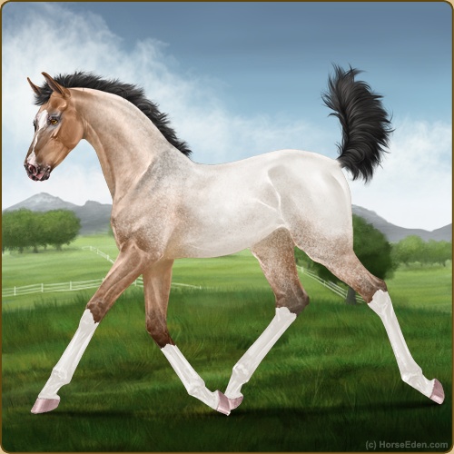 Color: Light Bay Roan Dun Varnish Frost Appaloosa