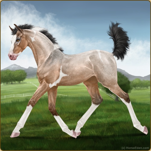 Color: Light Bay Roan Dun Tobiano Sabino