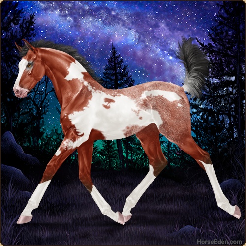 Color: Blood Bay Splash White Rabicano Frame Frost Appaloosa