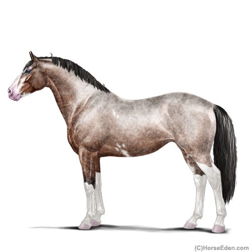 Color: Mahogany Bay Roan Splash White Sabino