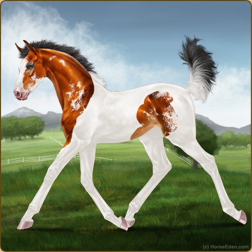 Color: Copper Bay Tobiano Splash White Sabino