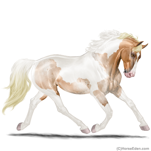 Color: Flaxen Red Roan Dun Tobiano Splash White