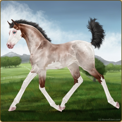 Color: Mahogany Bay Roan Splash White Sabino