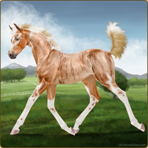 Color: Flaxen Red Roan Tobiano Brindle