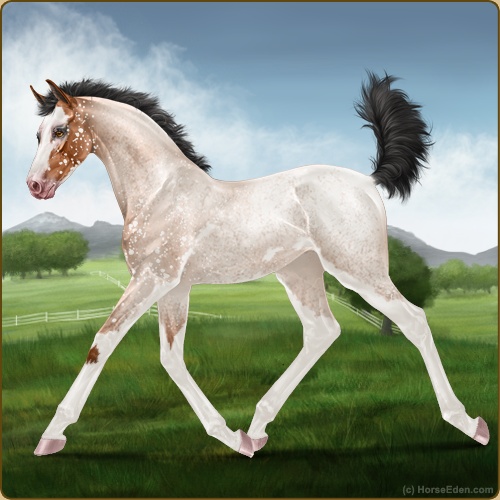 Color: Light Bay Roan Sabino Snowflake Appaloosa